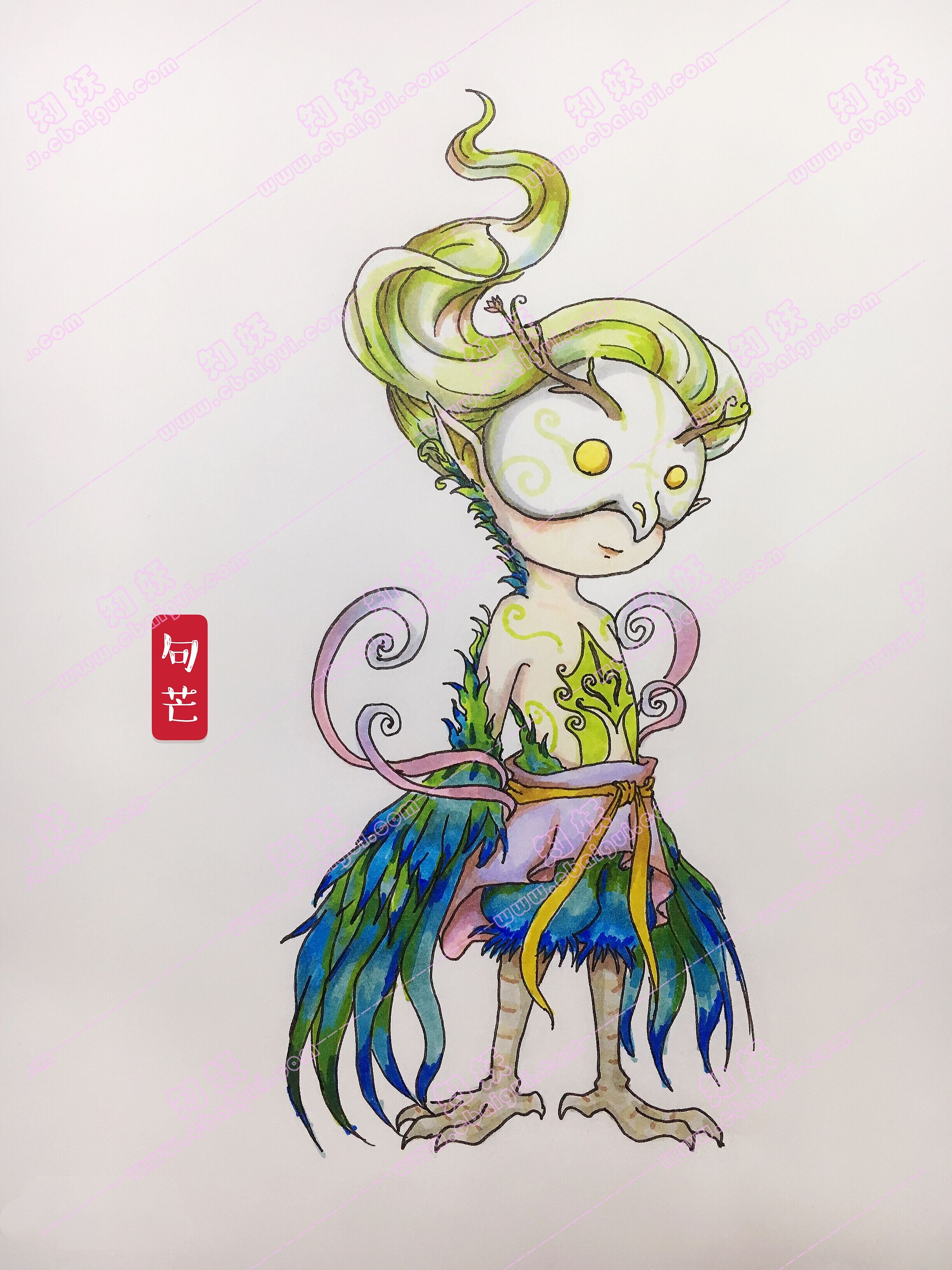 句gōu芒,也作“勾芒”,名重,伏羲氏的辅佐神。鸟身人面,乘两龙。是传说中的木神、春神,掌管草木的生长。