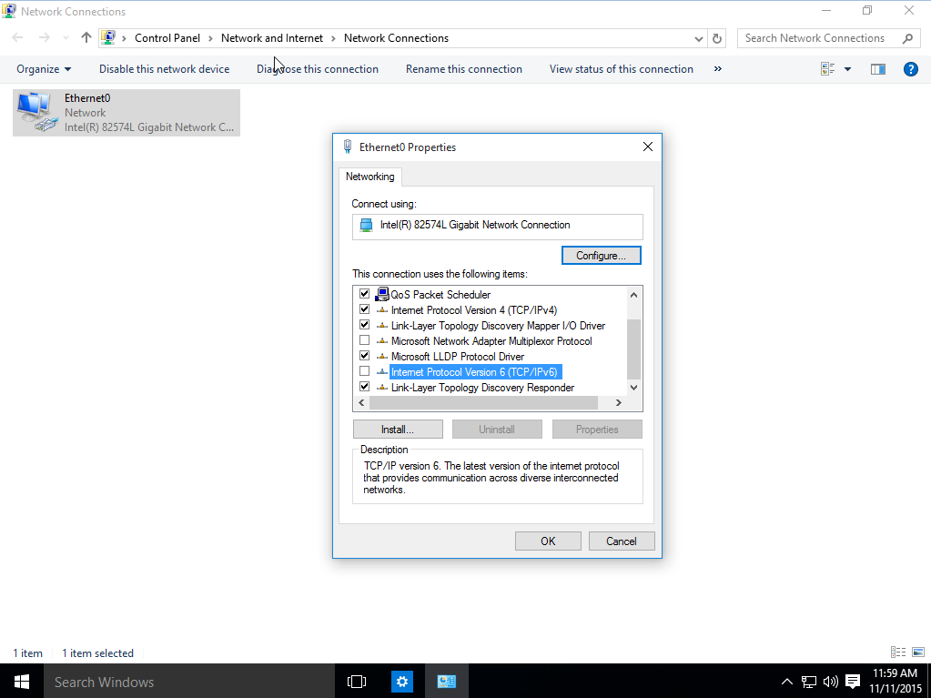 2. 取消选中 Internet 协议版本 6 (TCP/IPv6)——这很重要。