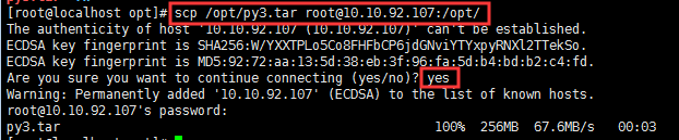 格式:scp tar包所在路径 用户名@IP地址:要上传的路径