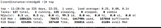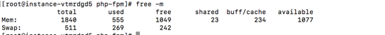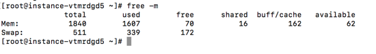 发现问题以后,首先使用 free -m 指令查看当前服务器执行状况:
