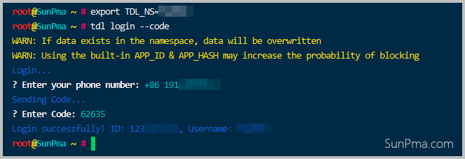 tdl up -p /root/sunpma