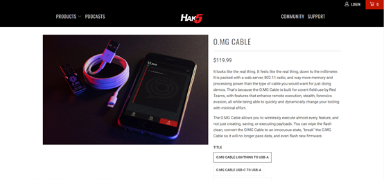 而是国内的极客团队HACKUSB,他们整的一手好活,这款近源渗透利器号称年轻极客的第一条黑客数据线,起码别的不说,这个价格很香,功能齐全,价格只有OMG的一半不到。