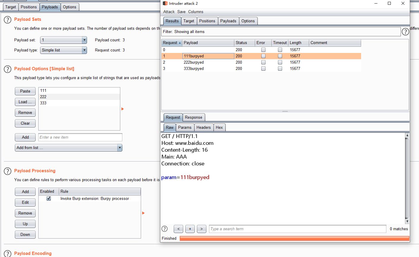 在脚本中,processor函数只是在payload后面加上了`burpyed`字符