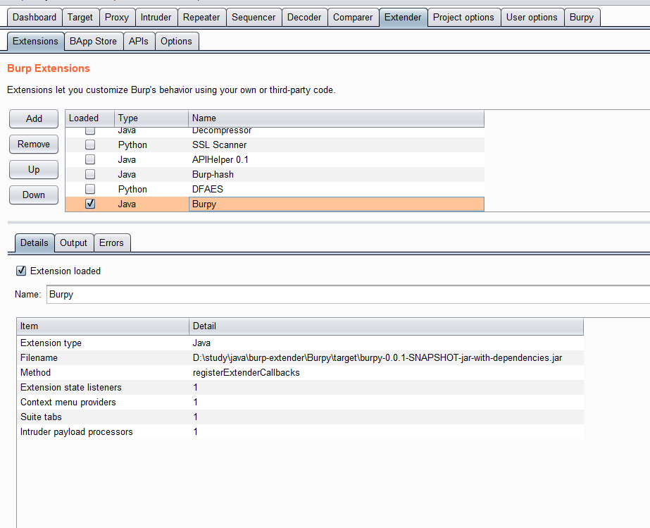 基于这个需要,我开始在Brida代码基础上实现一个其他插件,打通Burp与Python之间的路,于是就有了Burpy。