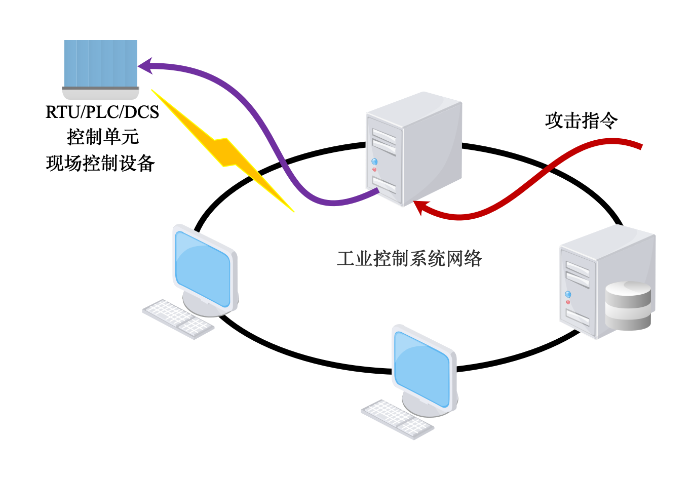 控制生产过程最简单的方法是直接向控制设备发送指令。大多数PLC、协议转换器或现场控制设备缺乏基本的认证功能,某些工业控制系统的通信协议也缺乏认证和访问控制功能,使得它们会接受所有格式正确的命令。攻击者只要向控制单元发送符合协议规约要求的格式的指令即可达到攻击目的。