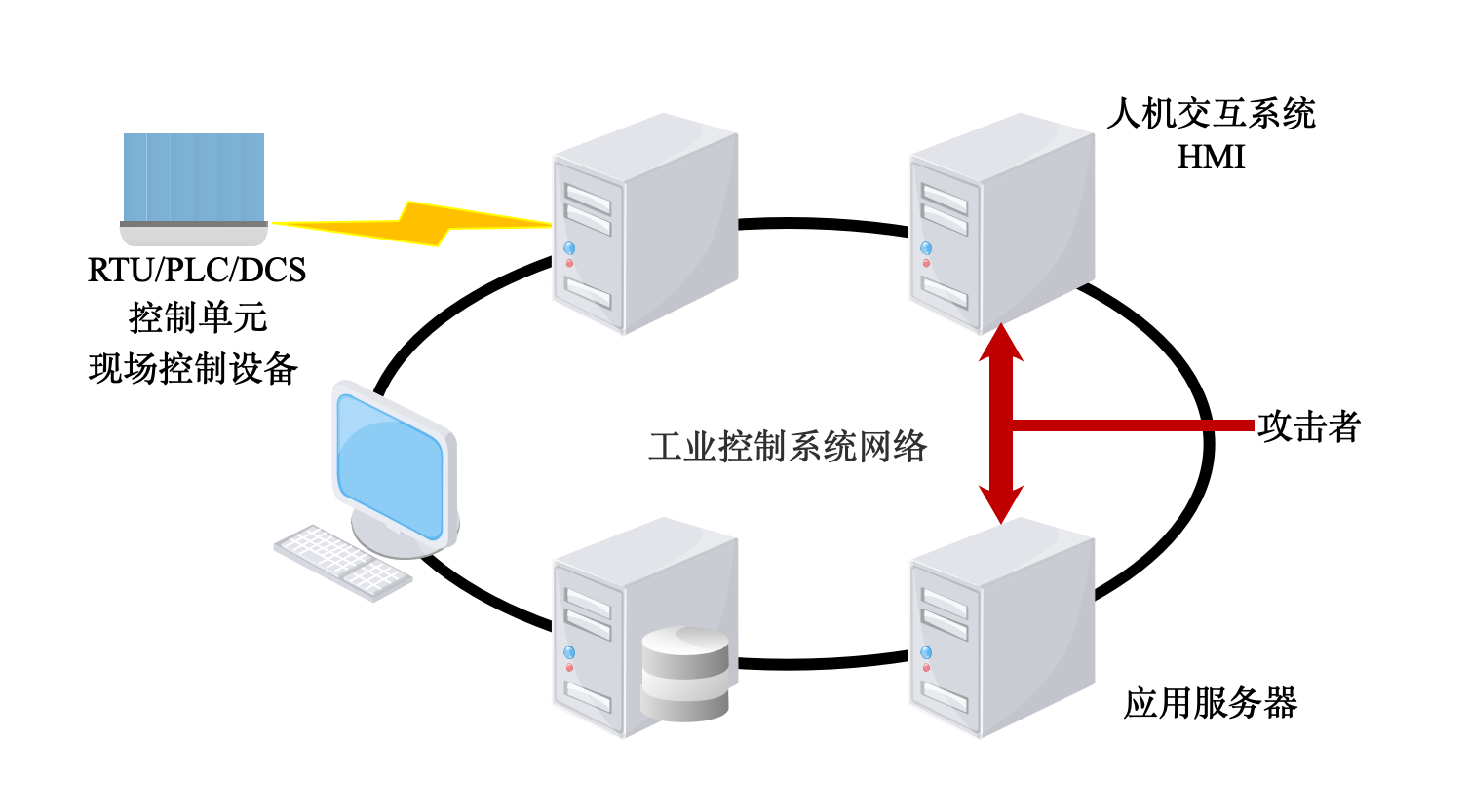 要对生产过程进行攻击并达到预期的攻击效果,要了解生产过程的细节,其中包括生产过程的整体流程、各步骤的功能、不同步骤之间的关系等信息。攻击者还要了解生产过程的控制系统以及控制逻辑,目标控制系统由哪些组件组成、各组件的功能和作用、硬件型号、软件(固件)版本、控制逻辑等信息。尤其需要关注数据采集服务器、数据库服务器和人机交互系统HMI的信息。