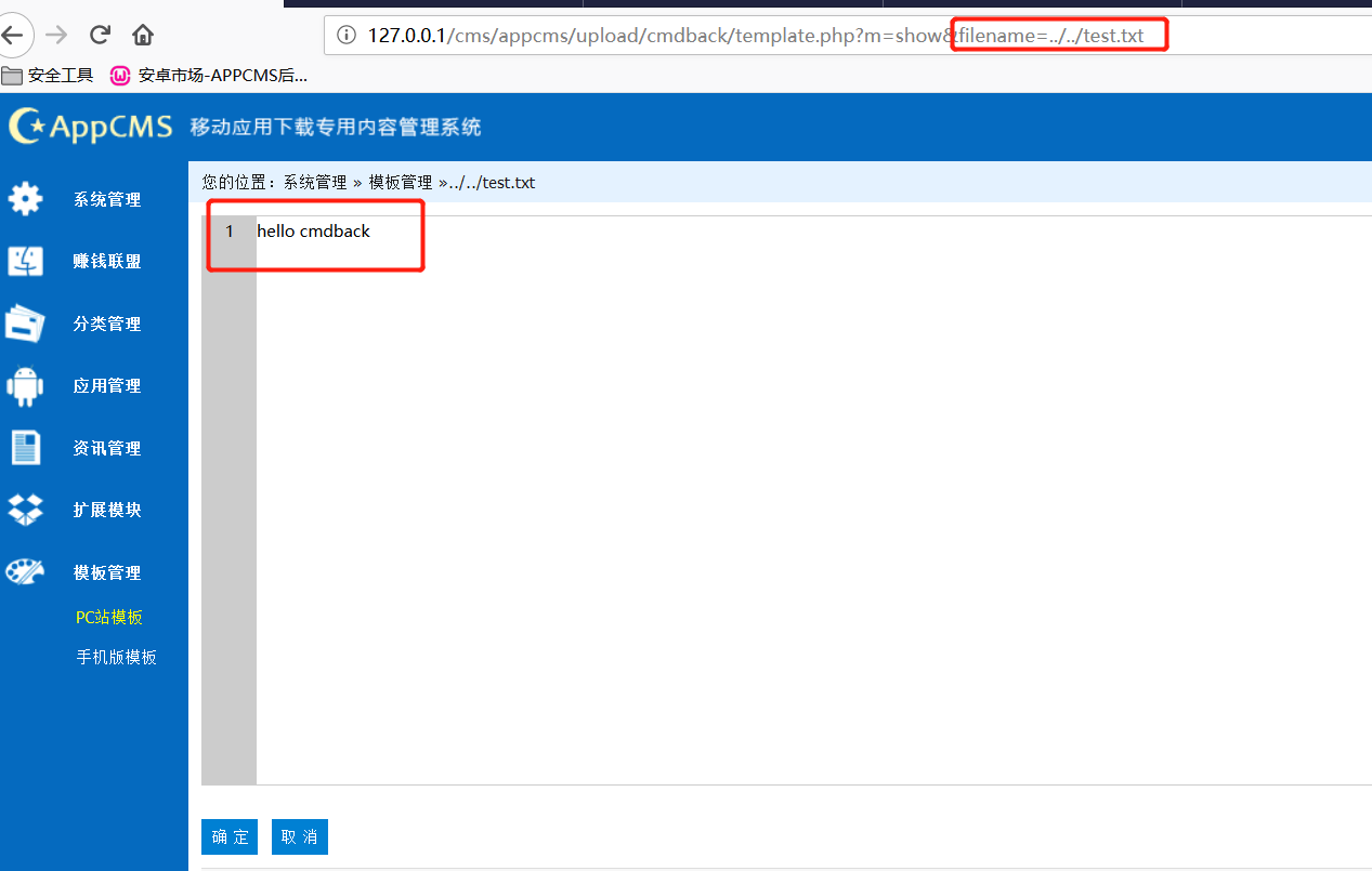 环境搭建完毕后,小白通常会以渗透测试的思维去找网站后台的敏感接口,这些接口一般都会与数据库通信,说不定存在SQL注入、文件上传漏洞、任意文件删除漏洞等。比如数据库备份、模板信息、上传文件等。其实今天看的是后台getshell的一个漏洞,这个漏洞是存在于后台的模块管理,对应的php代码是存在于appcms\upload\admin(原始目录,安装后需要重命名)\template.php文件。