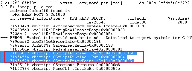 随后调用class的虚函数vbscript!CScriptEntryPoint::Call进行初始化,最终的调用栈如下:
