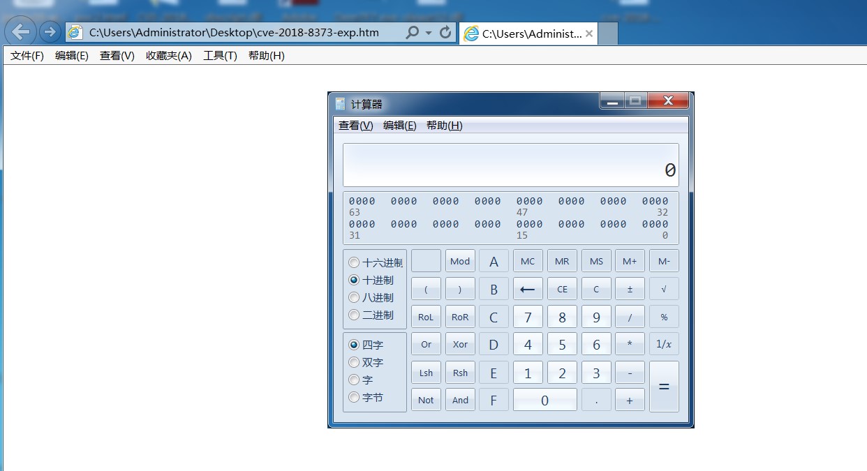 在Windows7环境下能够成功利用,以弹出calc为例。